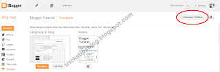 - Setelah masuk klik panah bawah (disebelah kanan judul blog > pilih template